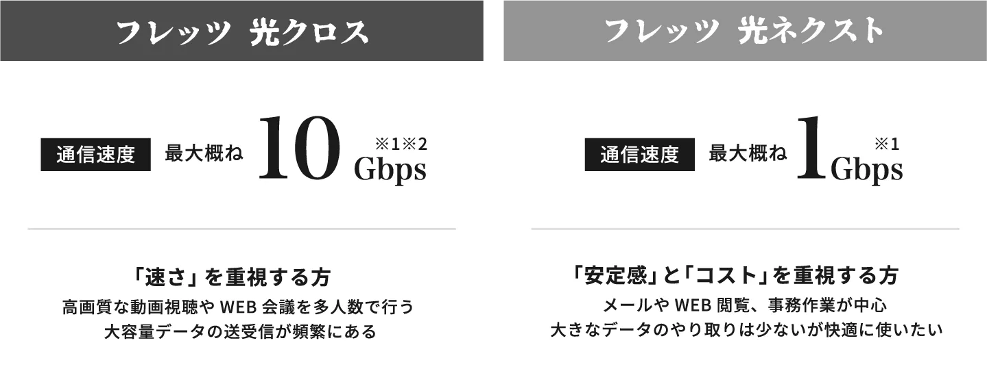 - ※1 最大通信速度は、技術規格上の最大値であり、実際の通信速度を示すものではありません。お客さまのご利用環境(端末機器の仕様など)や回線の混雑状況などにより大幅に低下することがあります。